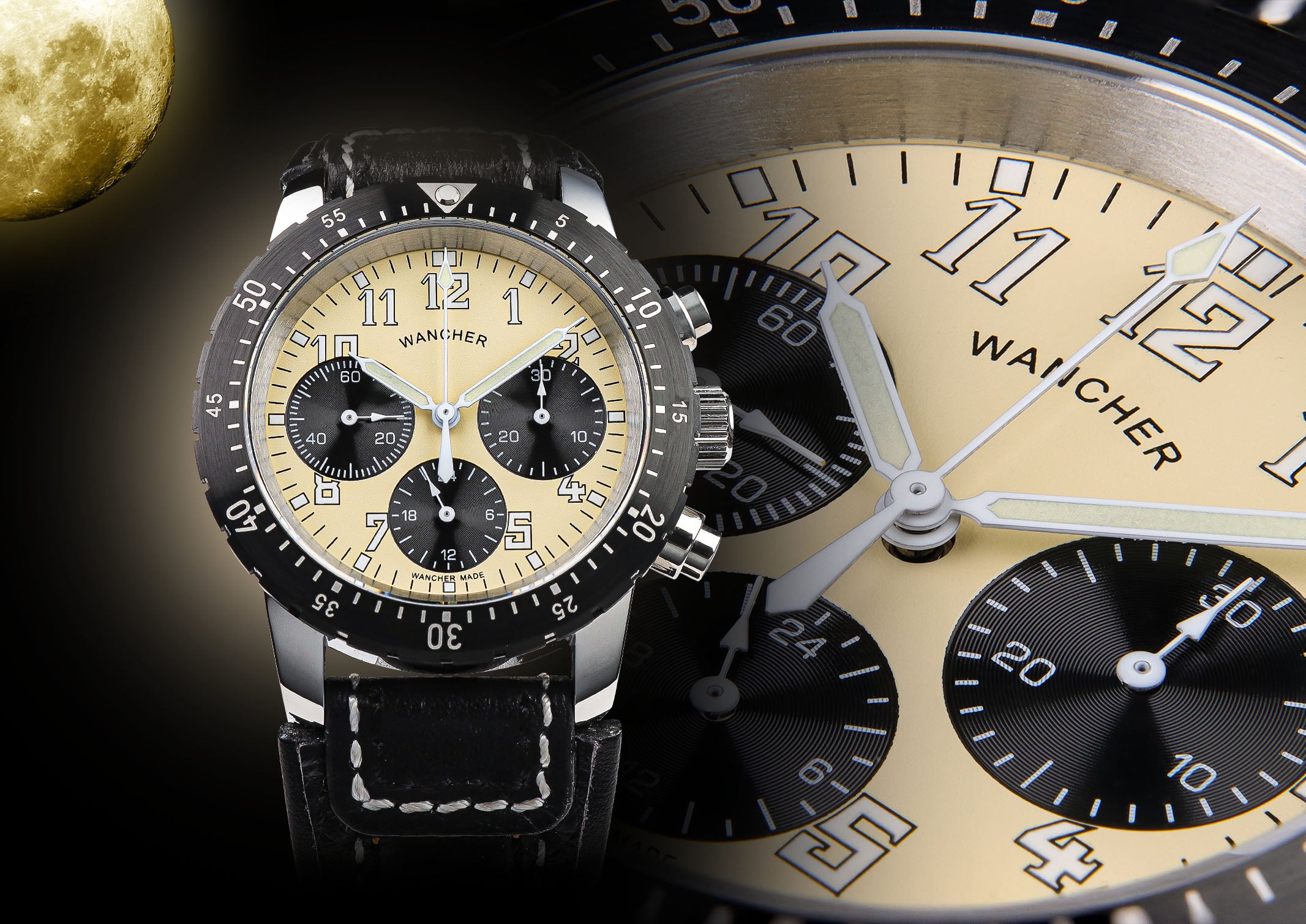 中秋の名月の美しい月の色をアエロ・ナハトの文字盤で表現しました。