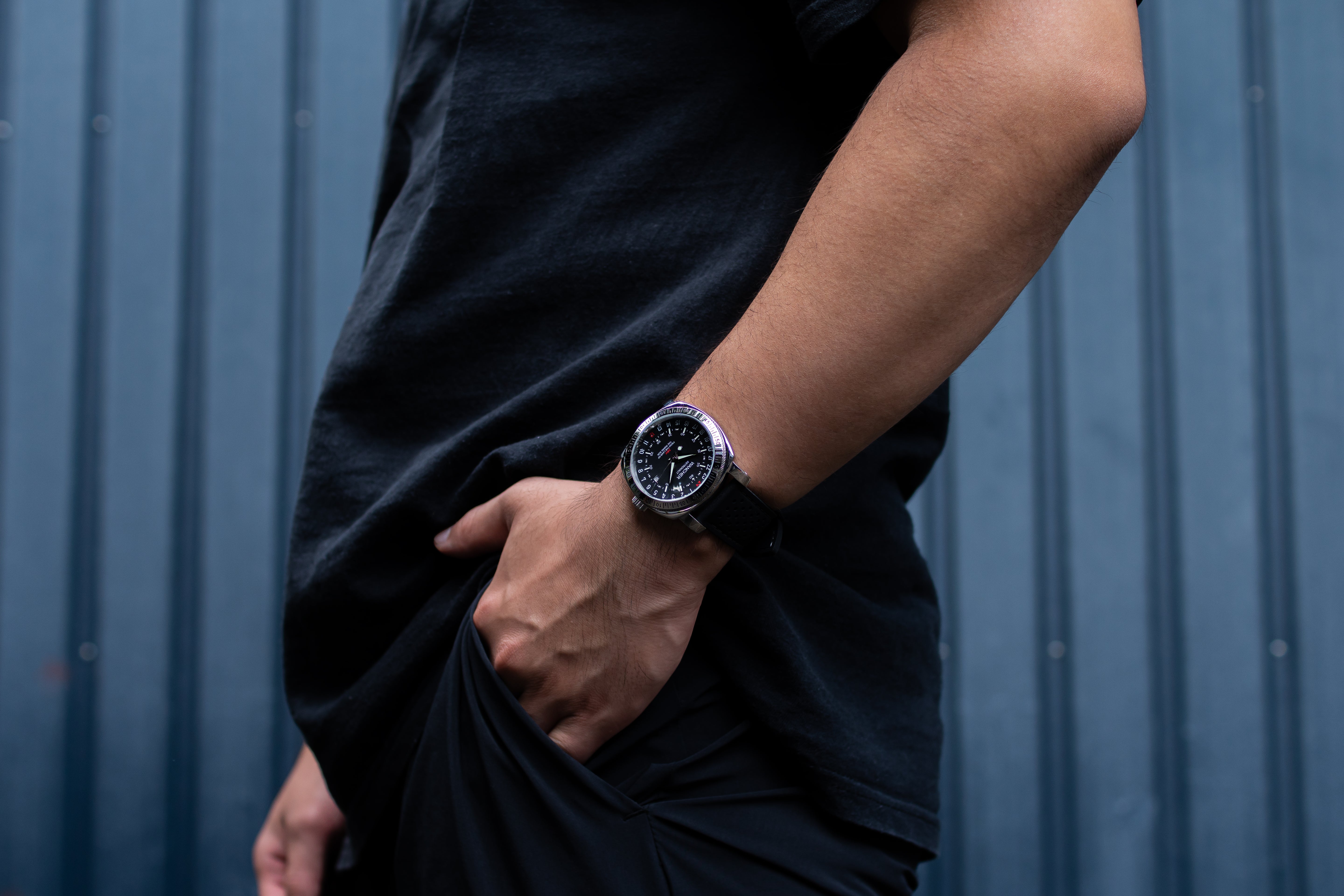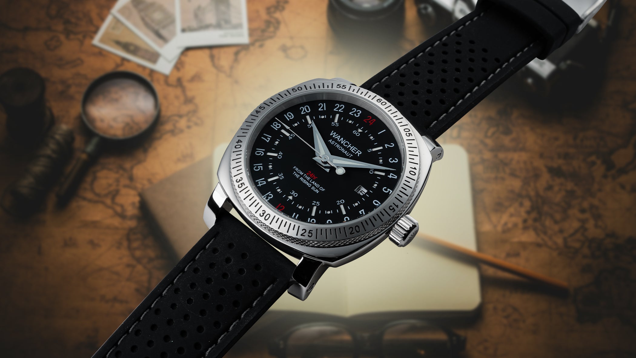 1日が時計1周で分かるデザイン。パッと見てAMとPMが見れるこの時計は、複数のタイムゾーンをまたいでの旅行時や、極地など昼夜の区別がつきにくい場所で活躍することでしょう。24時間時計ならではのデザインと実用性であなたの旅の相棒に。